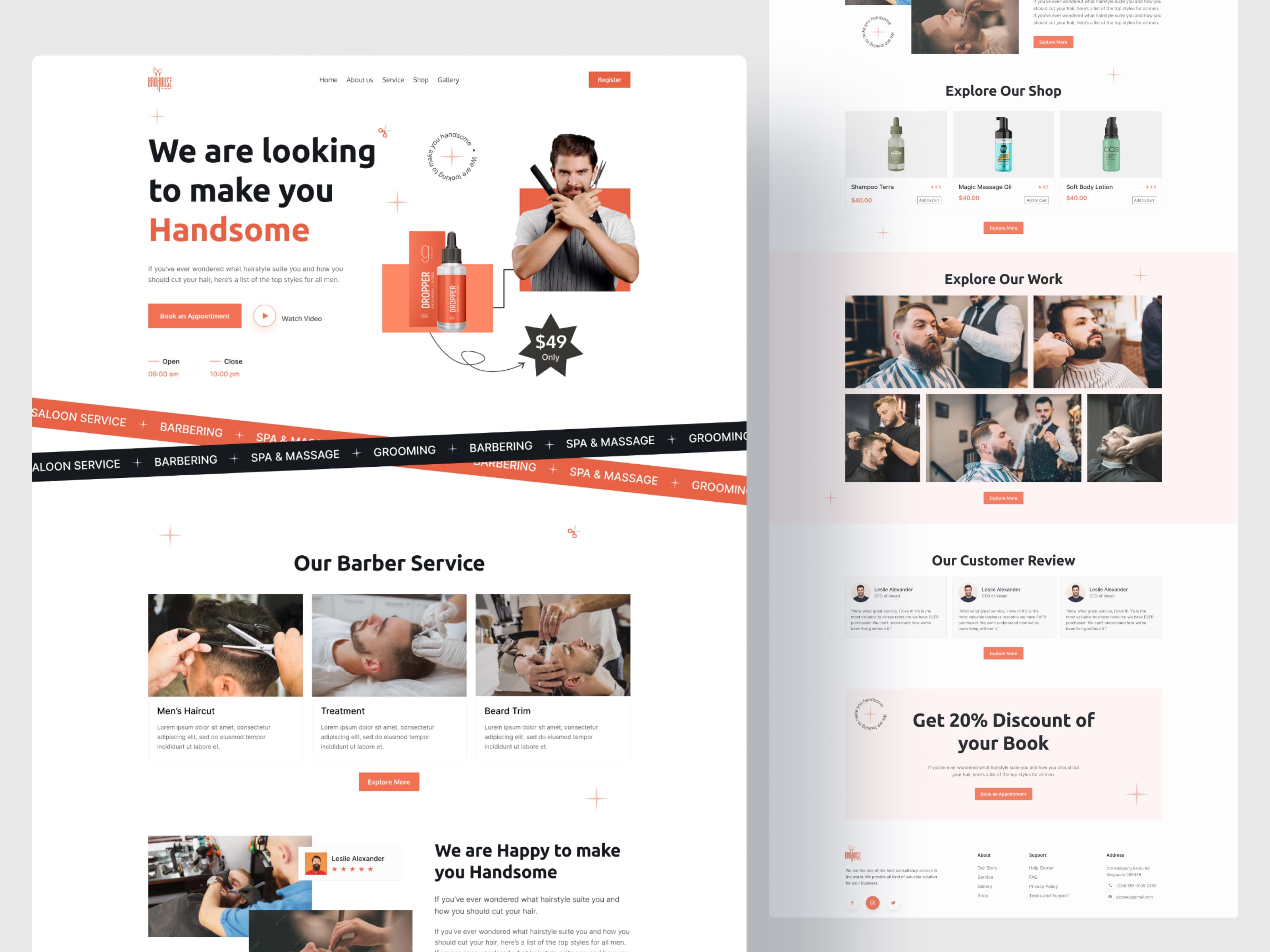 suitable for barbershops, salons, spas, clinics, beauty centers, gyms, personal services, local businesses, and small shops. Perfect for showcasing services, booking appointments, displaying work galleries, selling products, and collecting customer reviews in a clean and professional layout.