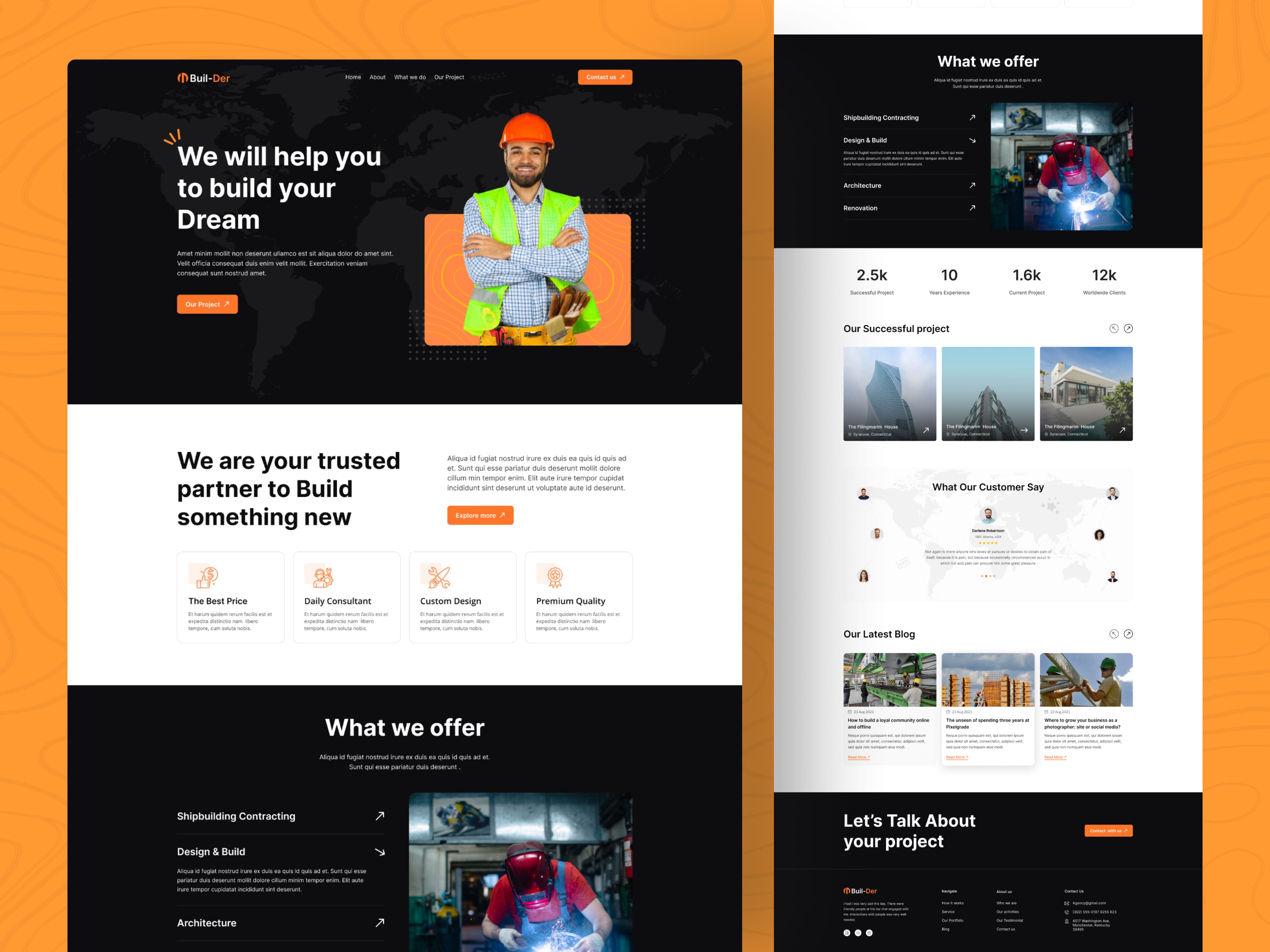 professional website template designed for construction companies, contractors, engineering firms, architecture offices, industrial businesses, real estate developers, maintenance services, and project-based companies. Ideal for showcasing projects, services, company experience, client reviews, and business achievements with a strong and modern layout.