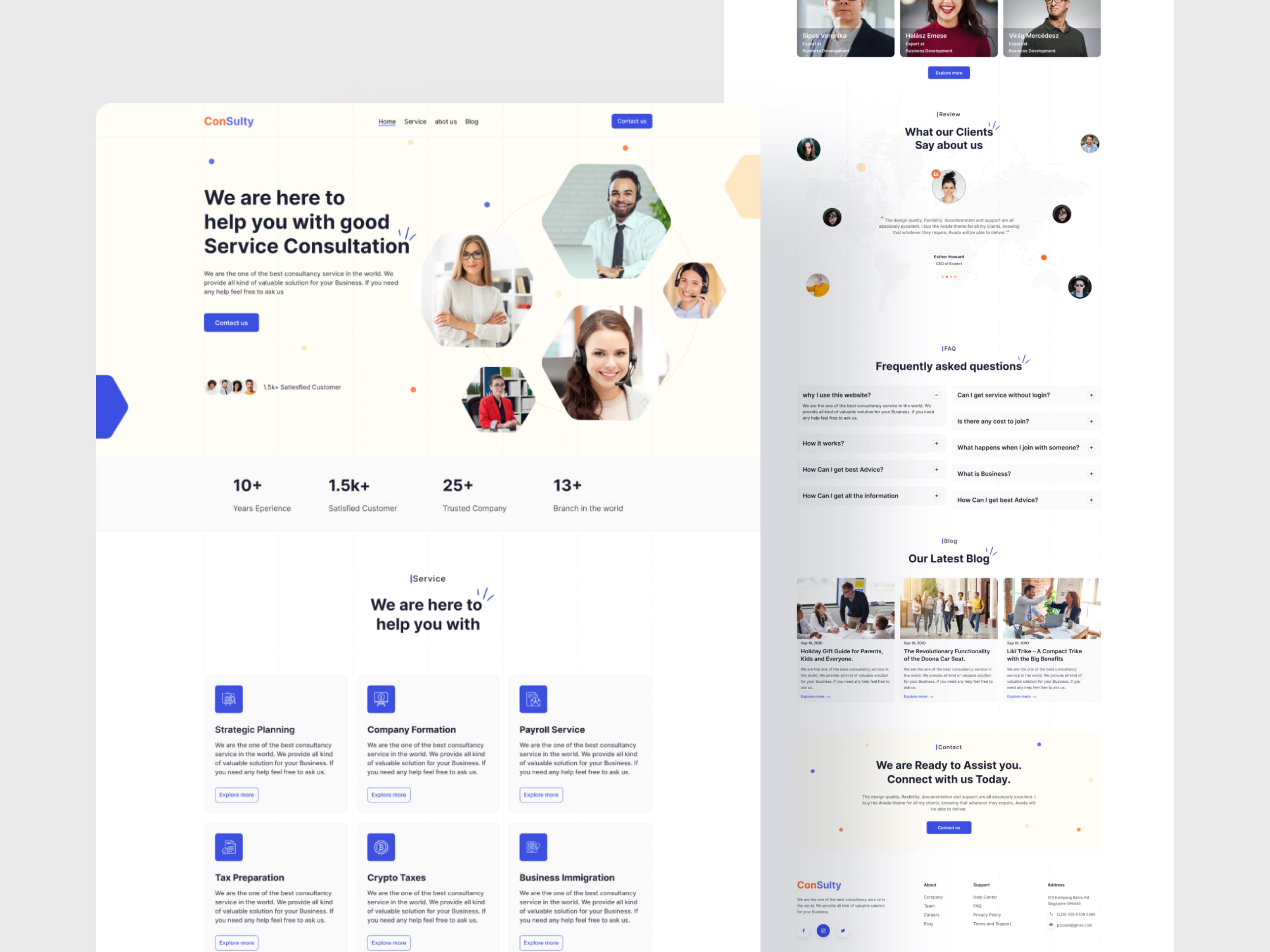 A professional website template suitable for consulting firms, business advisors, financial consultants, HR agencies, legal consultants, marketing agencies, corporate services, and professional service providers. Designed to present services, company expertise, client testimonials, team members, blogs, and contact sections in a clean and trustworthy layout.